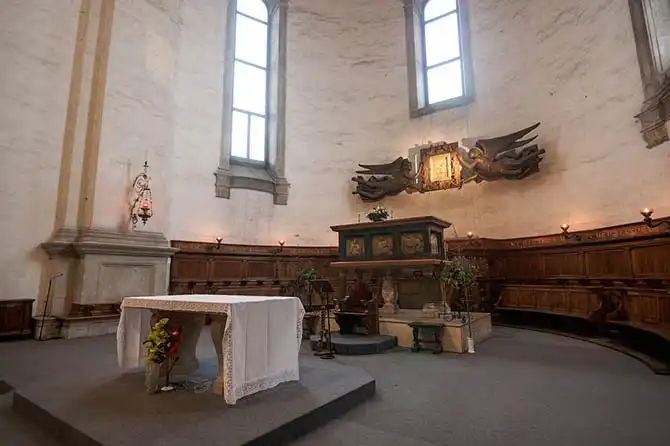 Интерьер подвергался различным изменениям с момента постройки в начале XIV в. вплоть до наших дней.