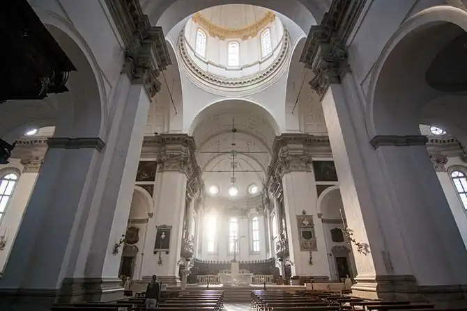 Собор Успения Богородицы, он же Дуомо, начался строится в XVI в., а освящен был лишь в XVIII в. До него на этом месте стояла раннехристианская базилика, разрушенная землетрясением XII в., а затем романский собор, в последствии разобранный для строительства существующего.