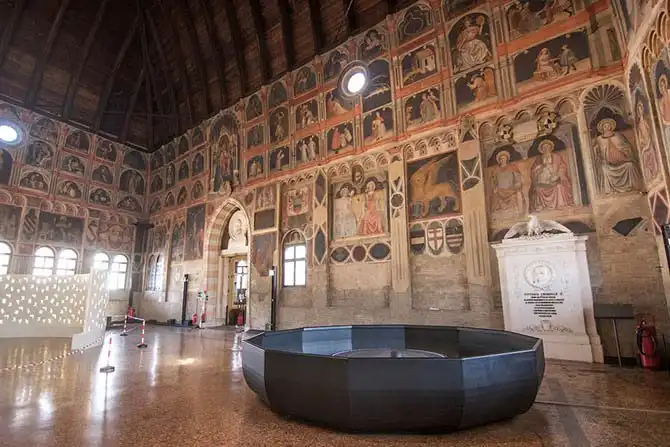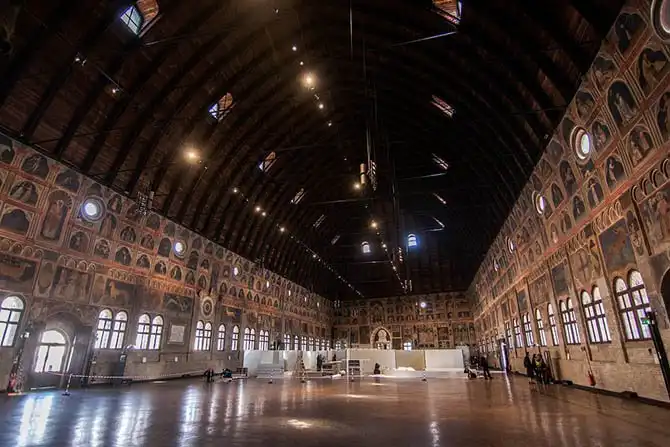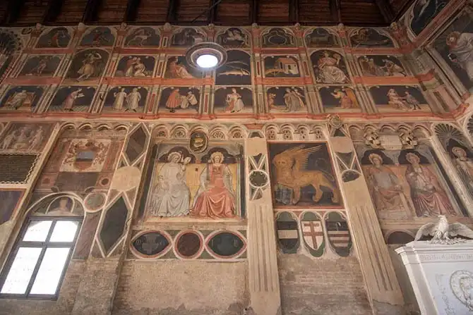 Фрески на астрологические и религиозные темы сохранились с XV в. Эти фрески писались после пожара и есть версия, что первые фрески Салона писал Джотто.
