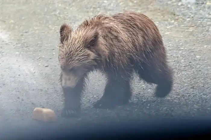 Хоть и находился, как я считал, на безопасном расстоянии медведица сделав рывок оказалась на расстоянии 5 метров. Рассвирепев прижала уши, встала на задние лапы, стала реветь и и показывать зубы требуя продолжения банкета. Так близко я еще не находился с хищником. Все уже находились в машине, а я медленно пятился назад, не показывая спину зверю, наложив, конечно, кирпичей.