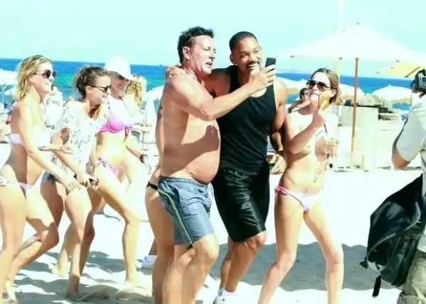 Уилл Смит совершенно неожиданно появился на пляже Ибицы, чем наделал немало шухера. Вокруг него тут же собралась толпа фанатов, и одна девушка старательно пыталась привлечь внимание актера, но он никак не хотел к ней поворачиваться. Наверное чуял, что фоточки попадут в сеть - а значит на глаза жены.