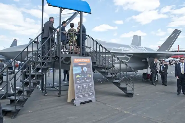Американцы решили всех обмануть, испытывая реальные сложности с настоящим самолётом и не смотря на то, что обещали показать его вживую, привезли на выставку макет в натуральную величину.