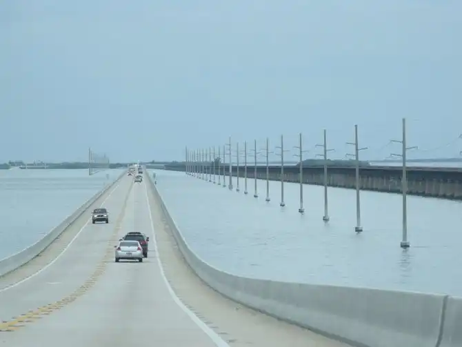 Затем ее восстановили, но вместо железной дороги тут проложили автомобильную трассу с 42 мостами. Один из них является местной достопримечательностью – это «Семимильный мост» («Seven Mile Bridge»), так как его длина семь миль, то есть, примерно 11 километров.