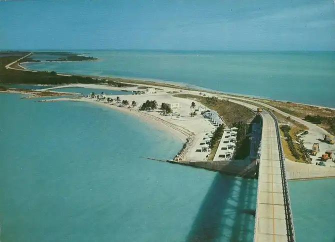 Причем, это еще и одно из самых длинных шоссе в мире, которое соединяет острова с большой землей. Это шоссе проложено на месте старой железной дороги – ее в 1912 году построил миллионер Генри Моррисон Флаглер. Ее протяженность равнялась 160 километров – это была немыслимая цифра, тем более, по тем временам, особенно если учитывать то, что большая часть дороги была сооружена над водой. Эту дорогу строили семь ет, она обошлась в 50 миллионов долларов США, но кроме этого здесь погибло 700 человек. К сожалению, эта дорого действовала всего 23 года, так как в 1935 году в День Труда страшный ураган почти всю уничтожил ее.