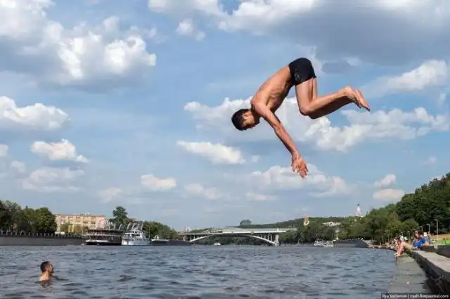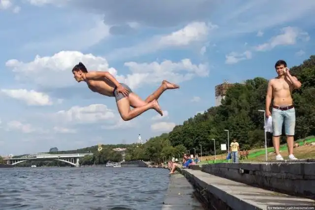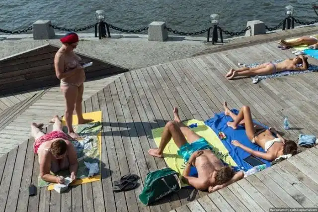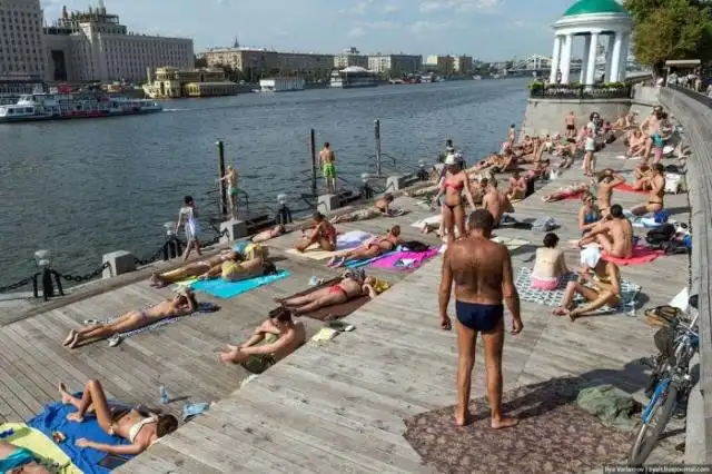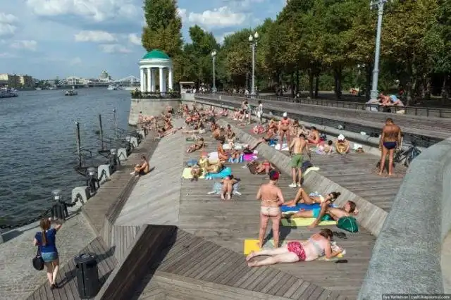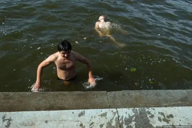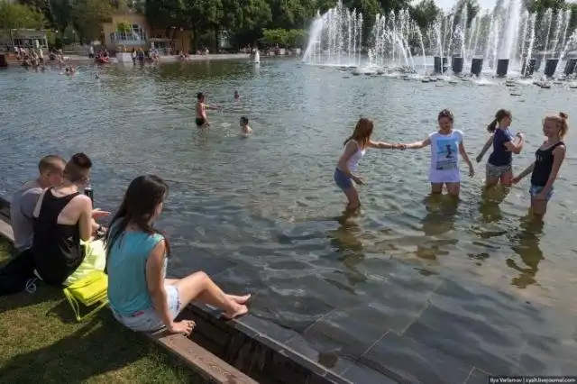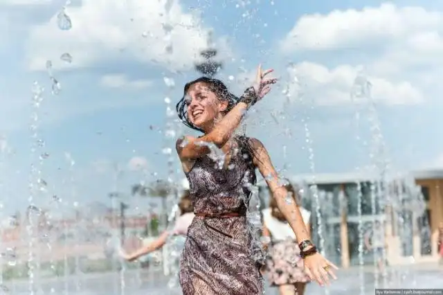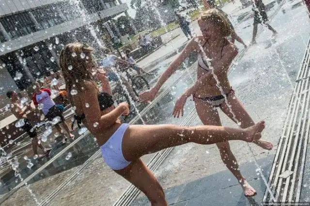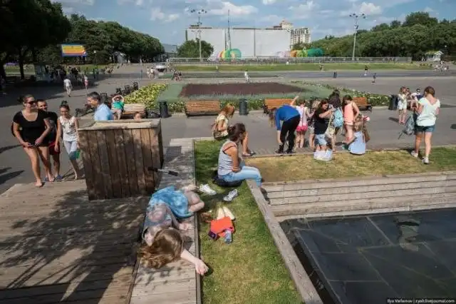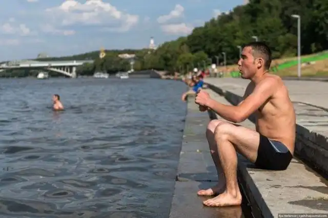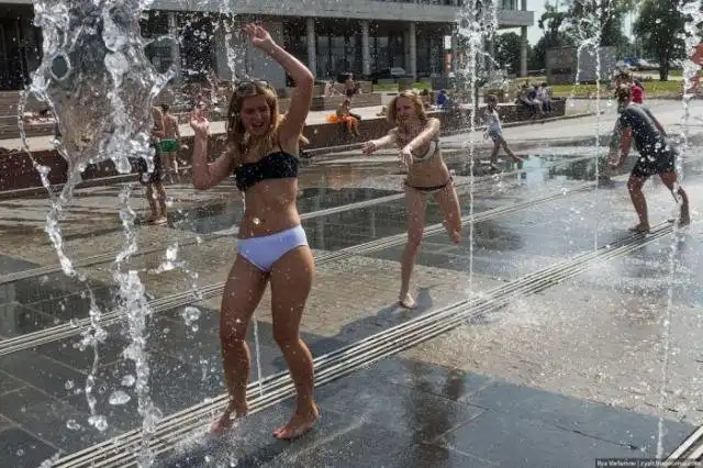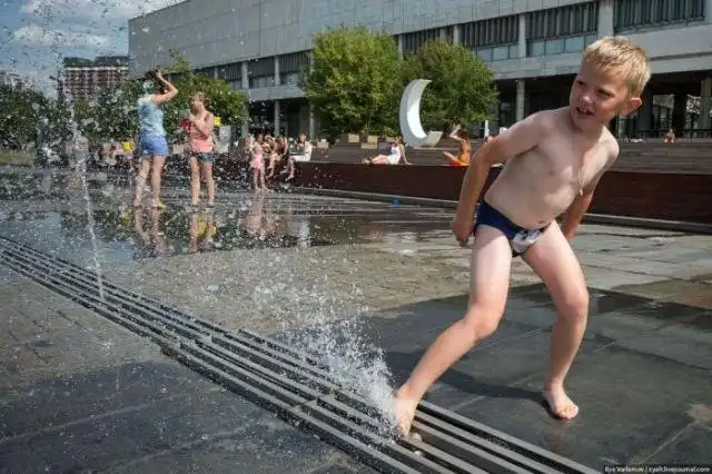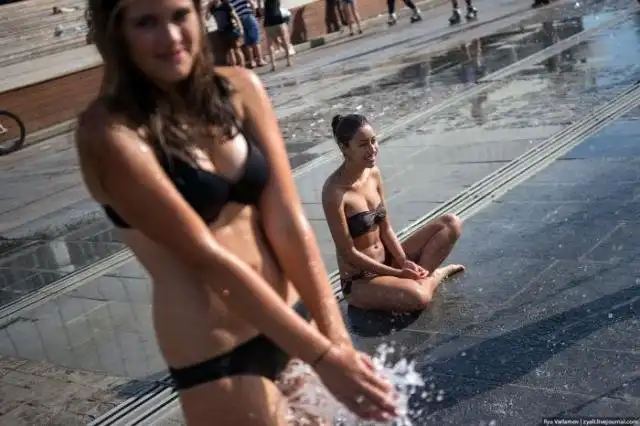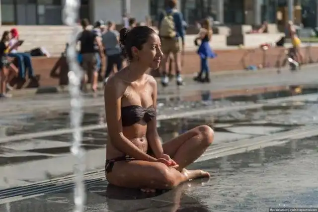 В Москве продолжается аномальная жара и многие москвичи ищут спасения у водоемов или в фонтанах. Забавно наблюдать, как солидные жители столицы постепенно превращаются в полуодетых, измученных солнцем пленников каменных джунглей ;)