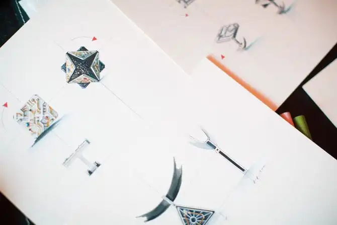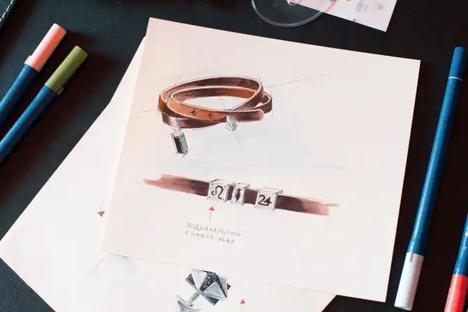 Эскиз каждого украшения художник рисует вручную. После утверждения эскиза заказчиком начинается производство.