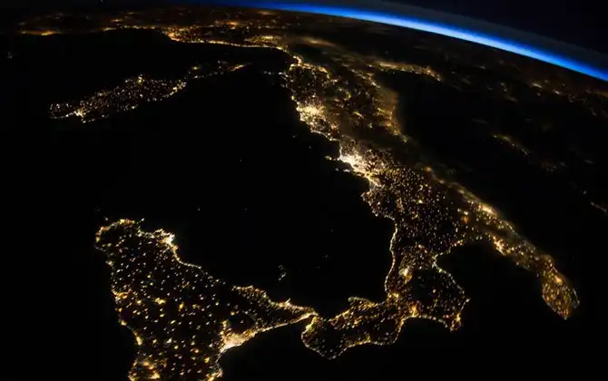 Снимок НАСА, сделанный с Международной космической станции, показывает ночь в Италии.