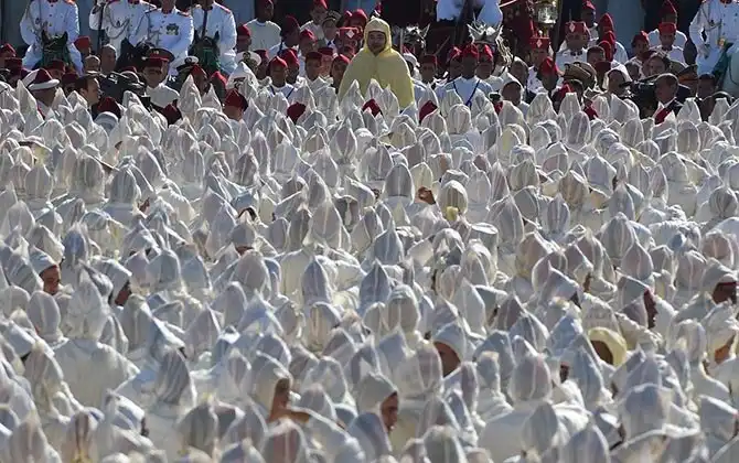 Король Марокко Мохаммед VI приветствует толпу в Королевском дворце в Рабате. В Марокко отмечается национальный праздник — День трона — в честь восхождения на престол короля Мохаммеда VI.