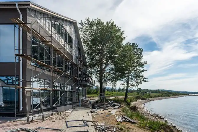 Посетили визит-центр заповедника, который должны сдать через месяц. Он находится прямо на берегу Байкала. Обратите внимание: для того, чтобы птицы не врезались в стекла, сделали наклейки хищных птиц. По признанию работников заповедника, эту технологию они подсмотрели в Германии.
