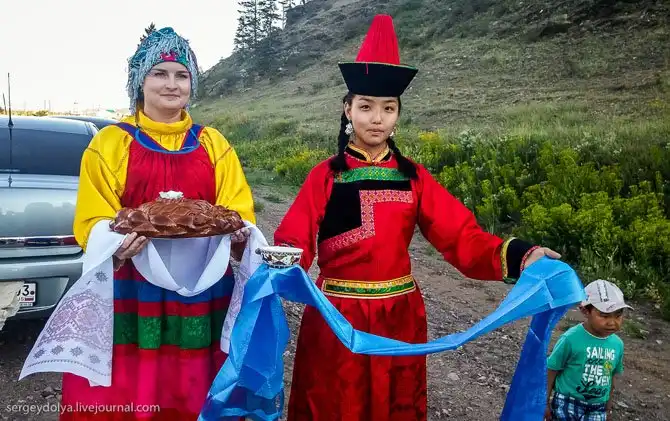 Встречали по бурятским традициям молоком, и по русским – караваем с солью:
