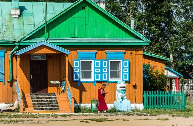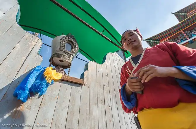 В деревне поблизости с дацаном живут ламы и их семьи. Обратите внимание, что лама говорит по телефону. Продвинутые ребята, оказывается: