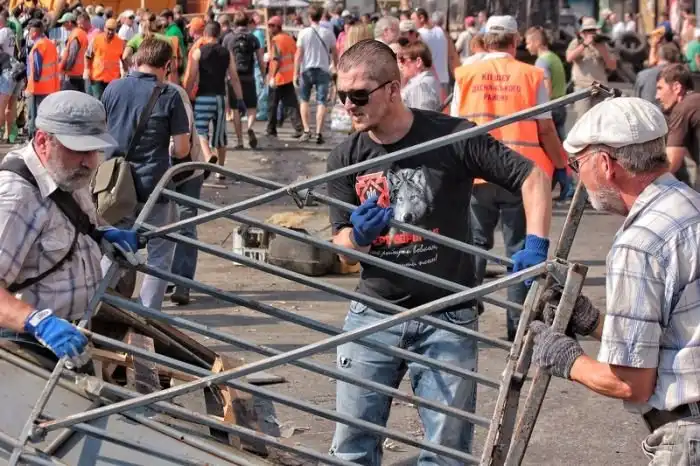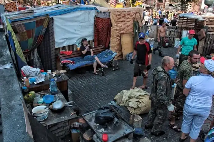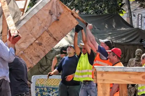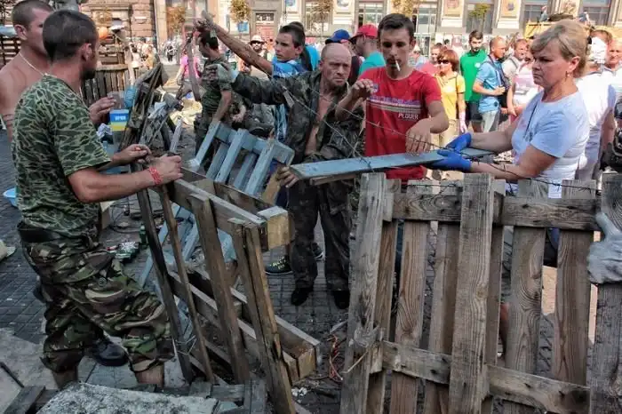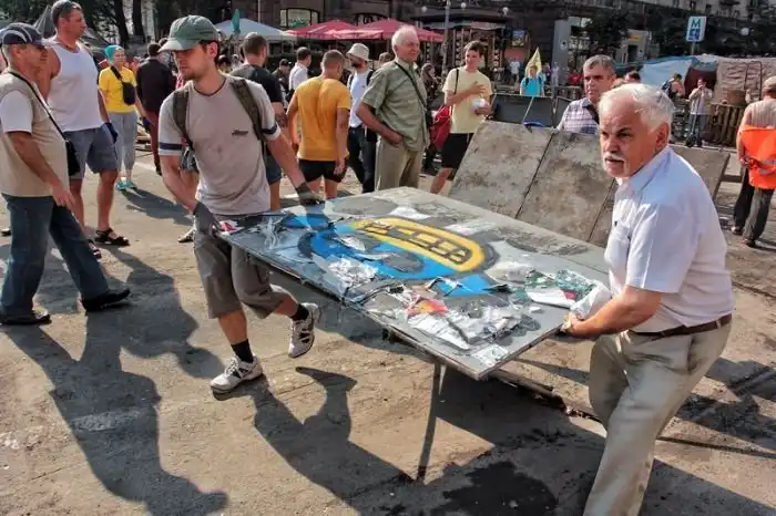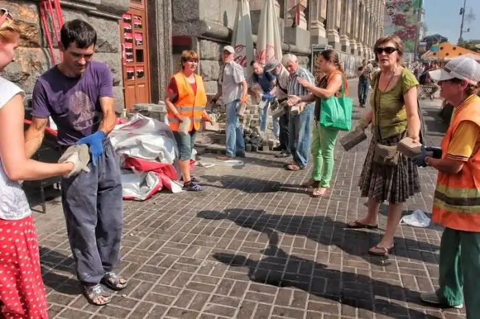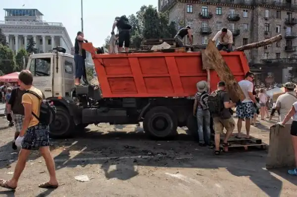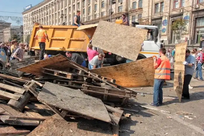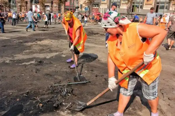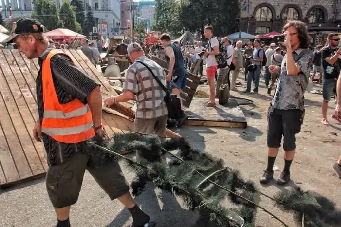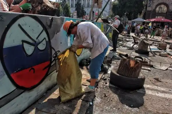 После "зачистки" Майдана 7-го августа 2014 года, власти Киева объявили о проведении субботника по уборке центра города, который состоялся утром 9-го августа. Объявленный заранее субботник привлек около трех тысяч человек, которые очистили Крещатик от баррикад и палаток всего за несколько часов.