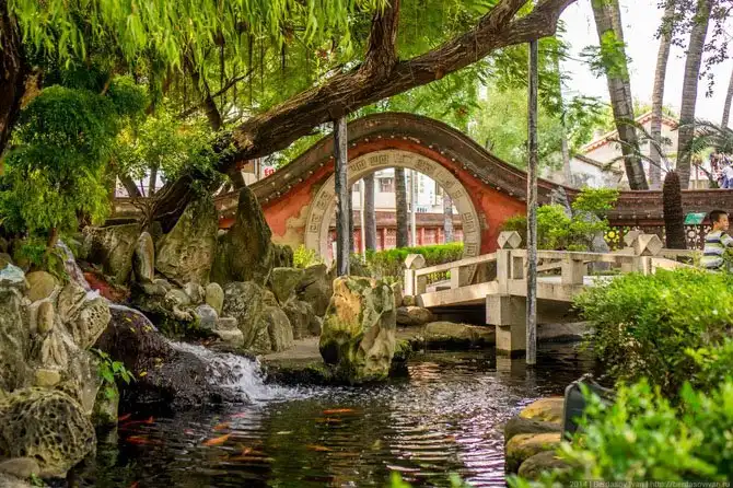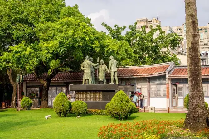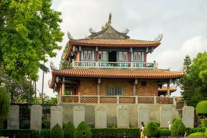 Выйдя с вокзала, турист попадает в центральный парк Тайнаня (если не в лапы таксистов, конечно). В целом обычный парк в китайском стиле, коих на Тайване много. Так как приехали мы туда ровно в полдень, общие виды парка не были фотогеничны.