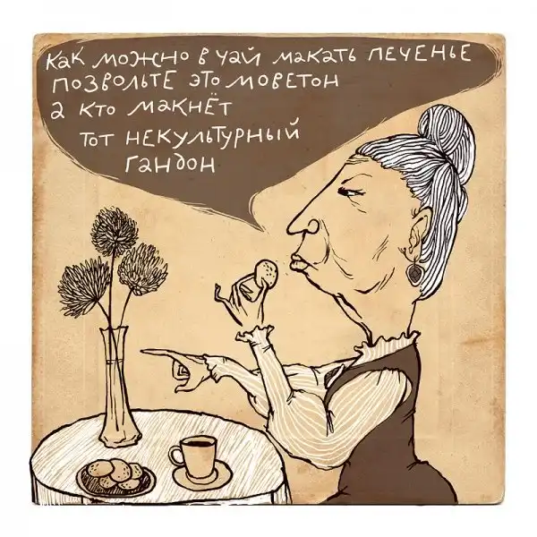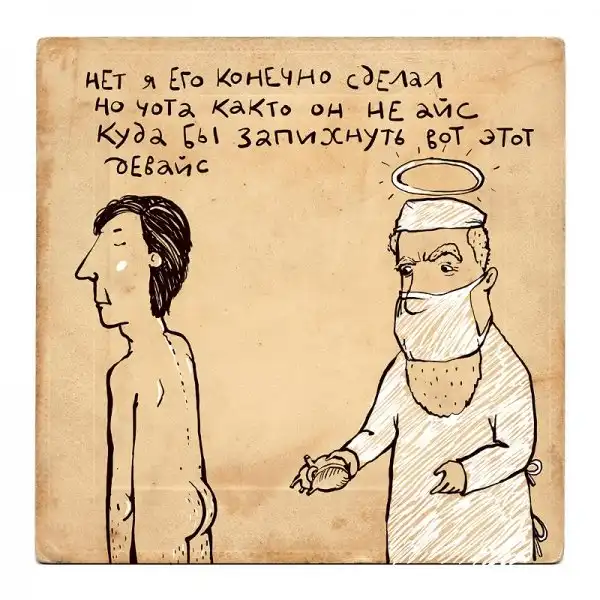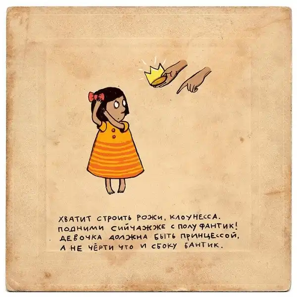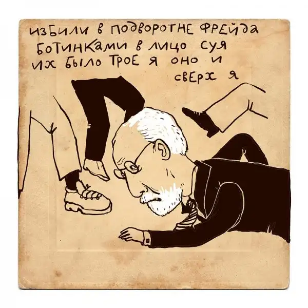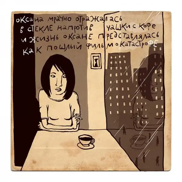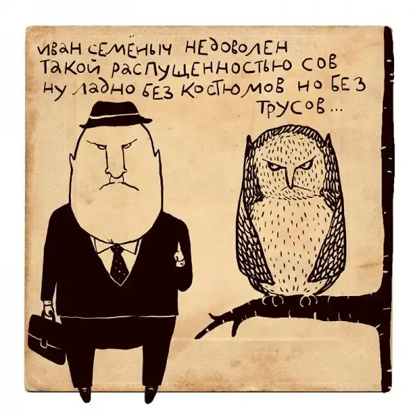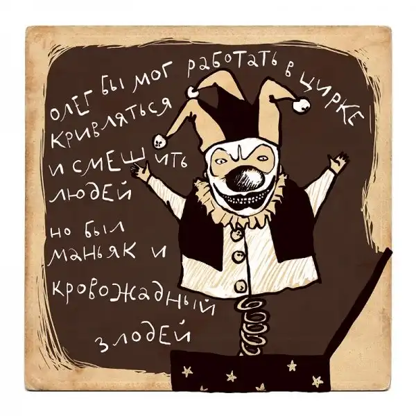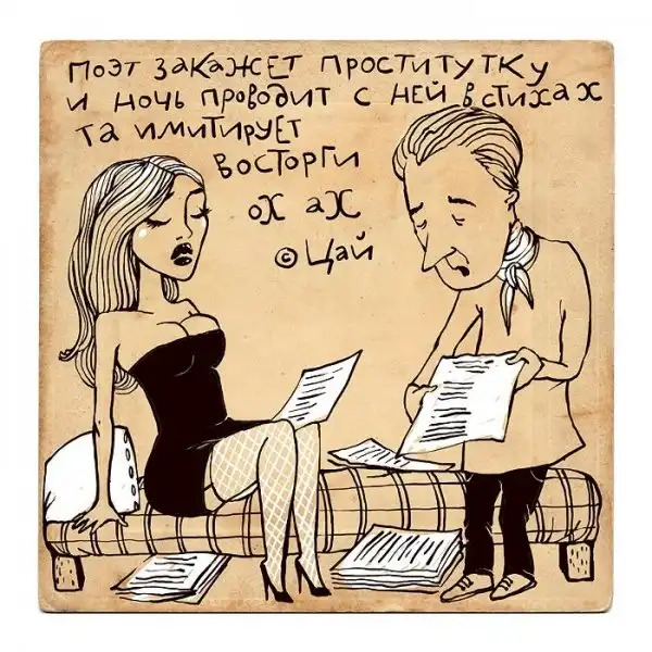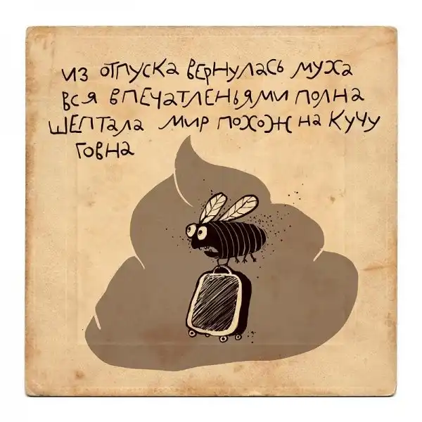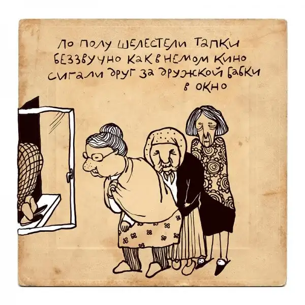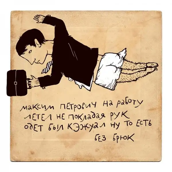 Ирина Сазонова, среди всего прочего, рисует очень примечательные картинки — в нарочито небрежном, примитивистском «лубочном» стиле. Каждый рисунок сопровождается рифмованным двустишием — иногда абсурдным, иногда жизненным, но всегда неожиданным, ироничным и метким. Таких маленьких шедевров у нее много, и это хорошо — их хочется рассматривать еще и еще.