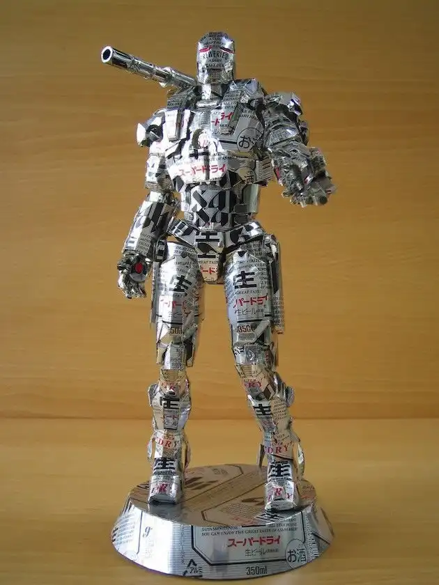Японский художник, известный под ником Makaon, мастерит невероятные скульптуры из алюминиевых банок из-под пива и газировки. Интересно, что нужных цветов японец добивается не с помощью краски, а подбирая узоры на металле.