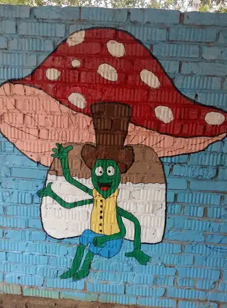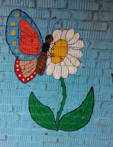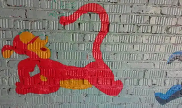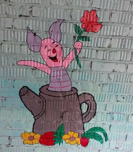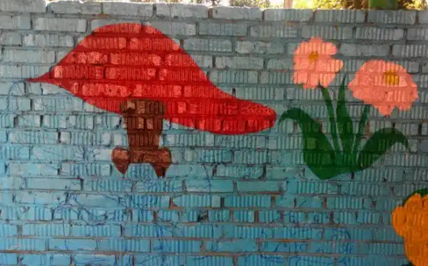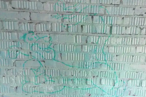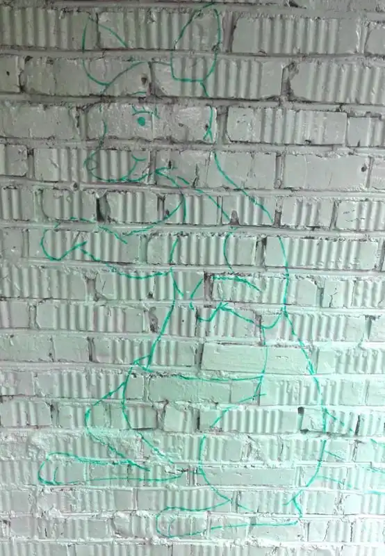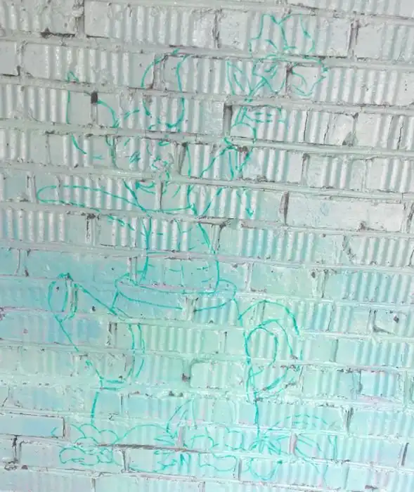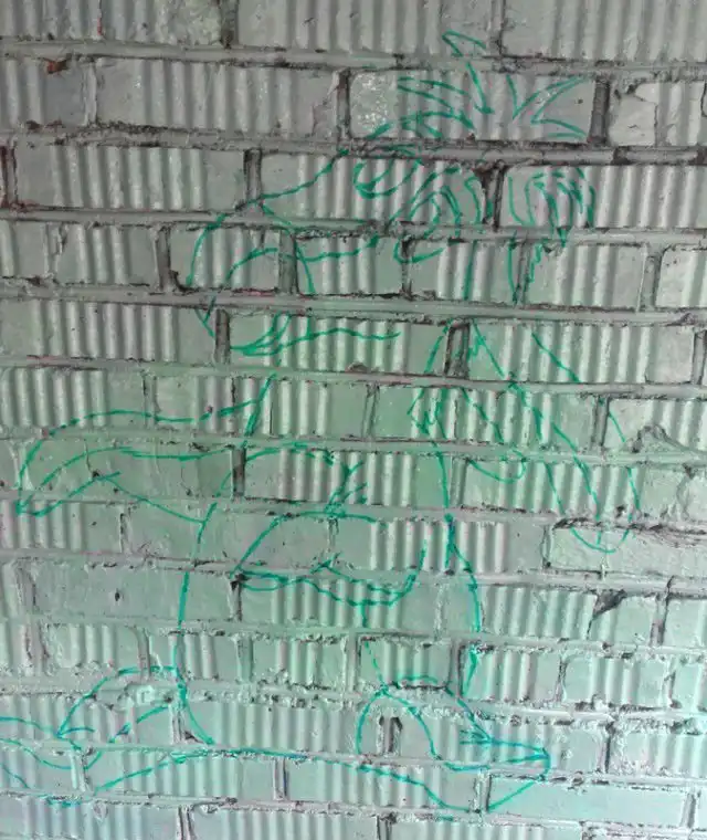 Итак, что мы имеем, это довольно таки большую площадь, и неровную кирпичную кладку, я вообще была без понятия как на ней рисовать. Сначала пробовала простым карандашом, но поняла что это глупая затея, поэтому обратилась к маркерам. С ними получалось лучше, и даже к концу нанесения эскизов поняла, что их можно корректировать простой влажной салфеткой.