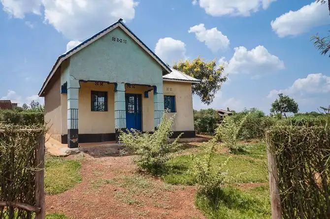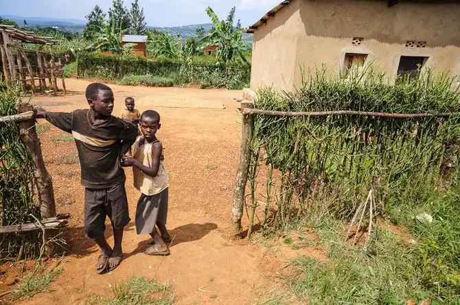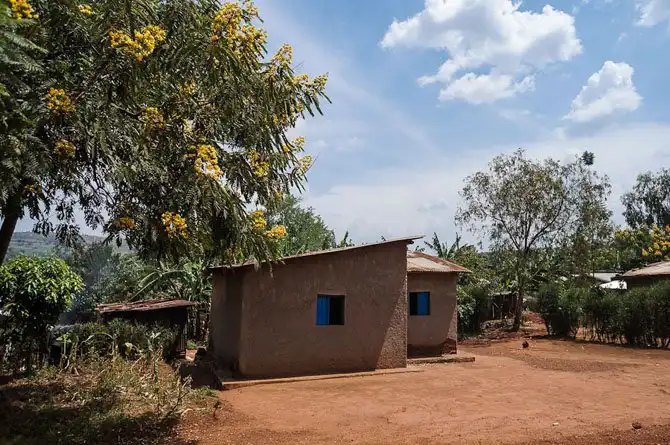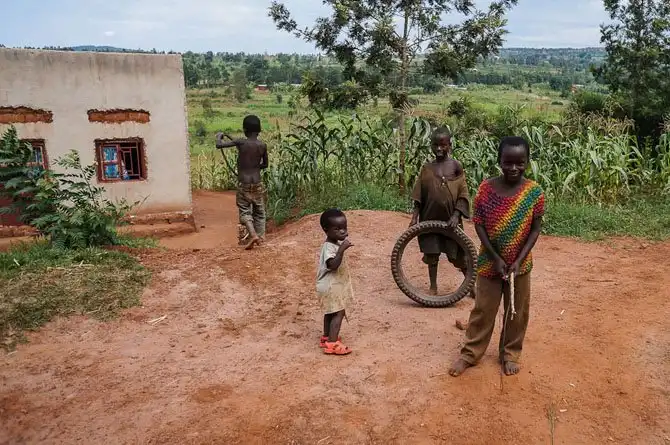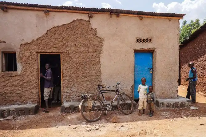 Дома пигмеев. Построены правительством, пигмеи в Руанде в лесу уже давно не живут, а живут вот в таких домах.