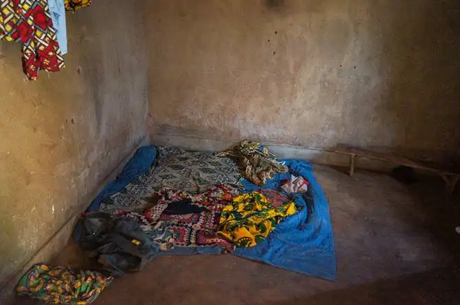 Внутри дома нет ничего вообще, только лавка и одеяла на полу. Нет даже матрасов.