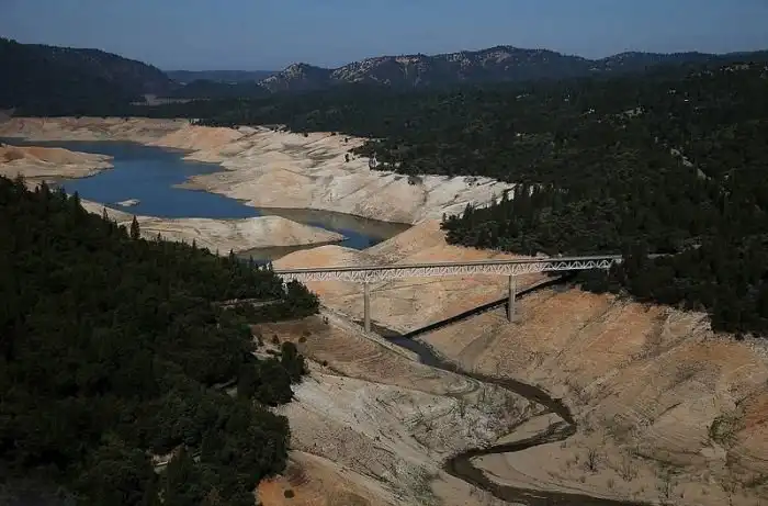 Нынешняя засуха в Калифорнии, США, в скором будущем может превратиться в настоящую общенациональную катастрофу. Отсутствие осадков и невыносимая жара привела к невероятно низкому по сравнению с прошлыми годами уровню воды в местных водоемах и реках, о чем вы сможете судить сами, посмотрев сравнительные фотографии в продолжении поста. На данный момент власти Калифорнии уже даже ввели запрет на использование воды для мытья автомобилей и полива лужаек, но в ближайшем будущем возможно введение и еще более жестких мер.