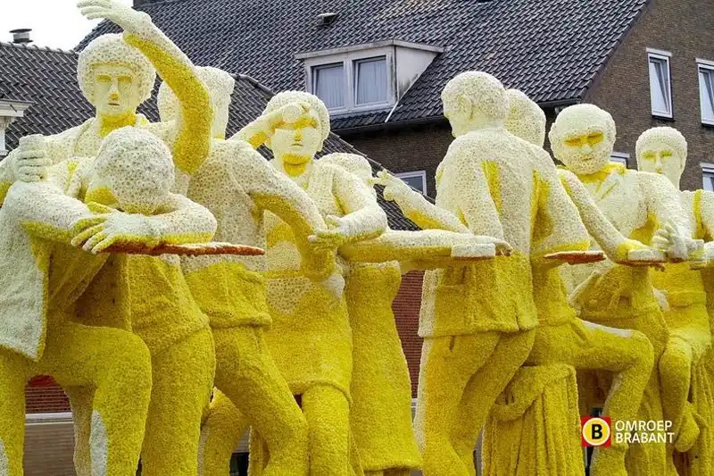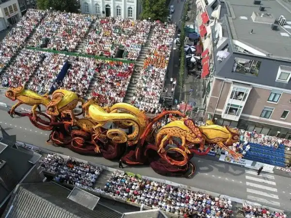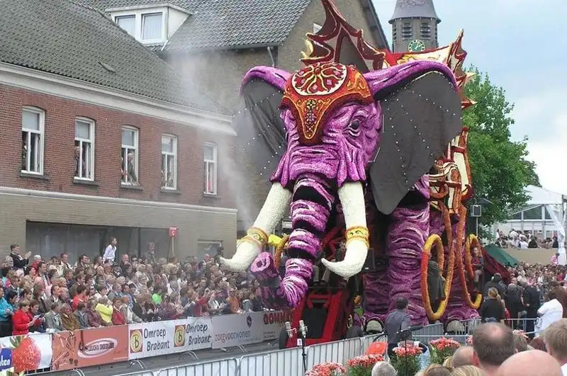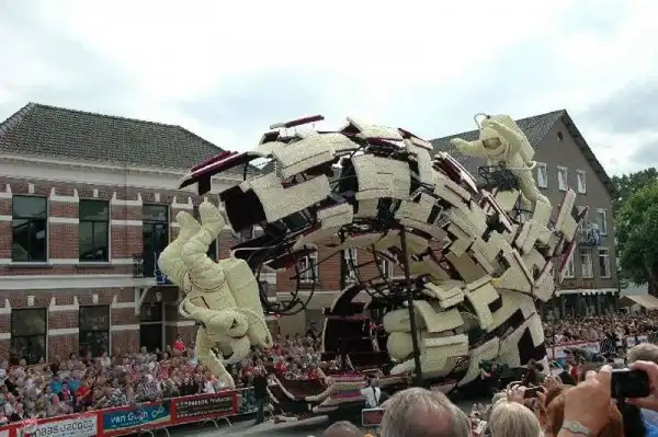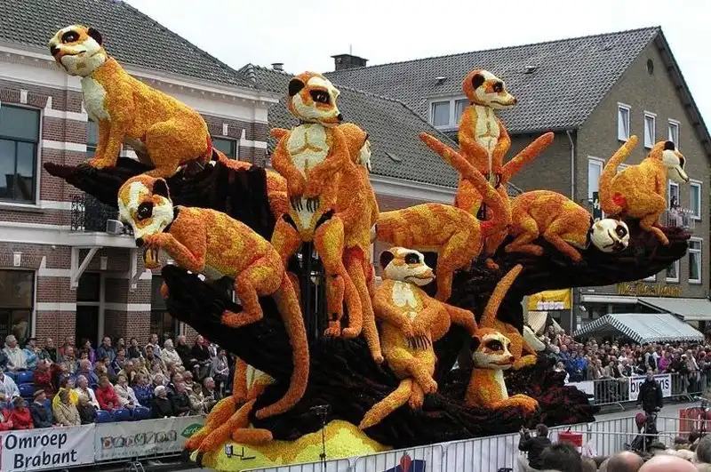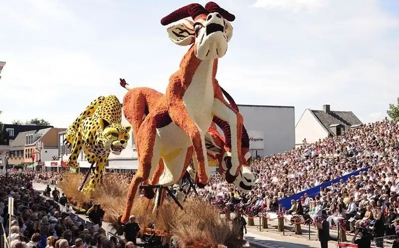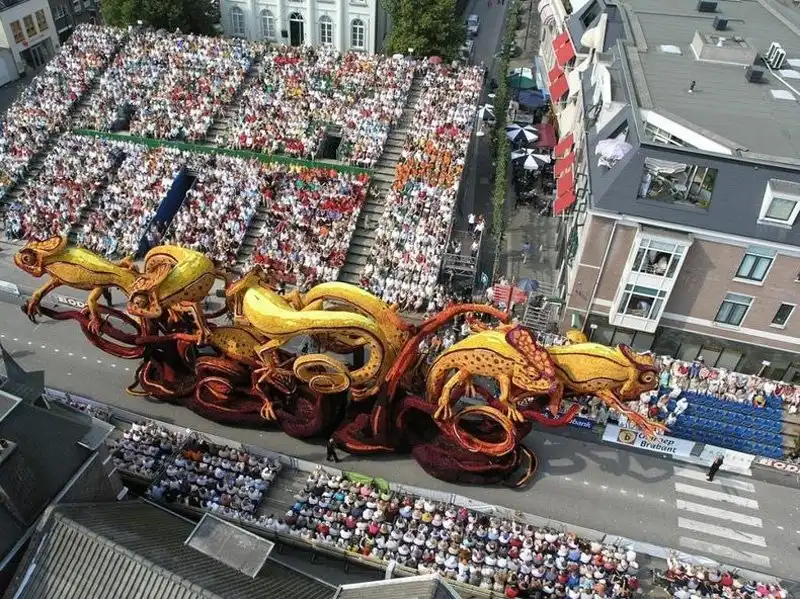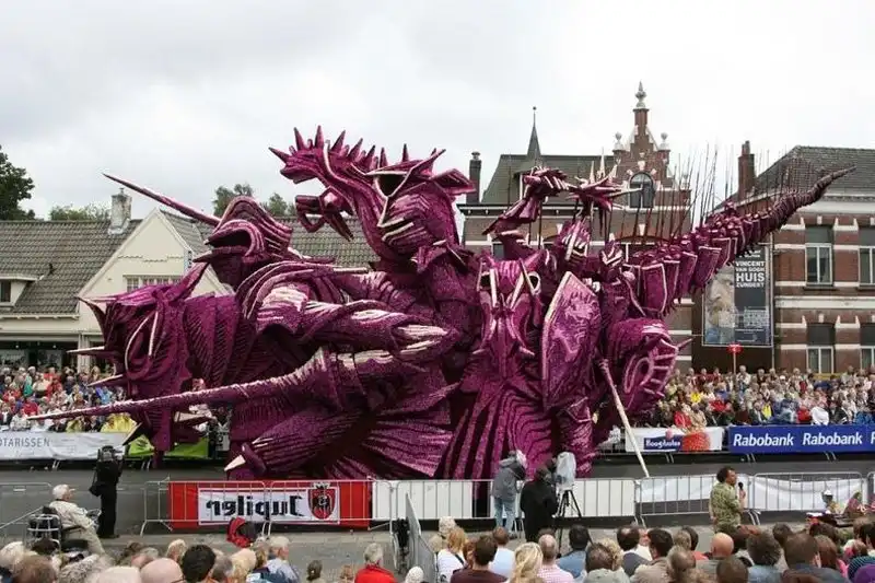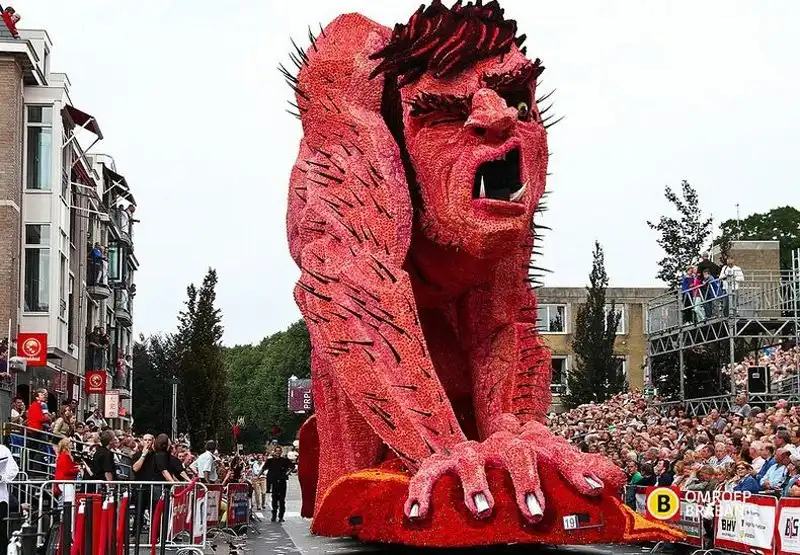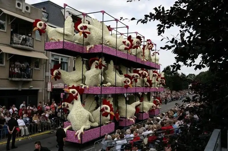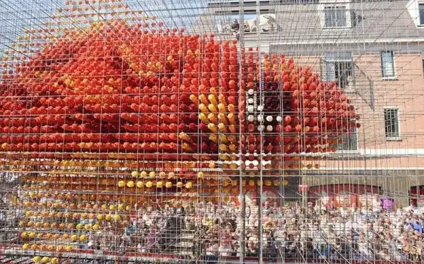 Мало того, что это крупнейший парад, это также один из самых зрелищных парадов в мире. Огромные движущиеся платформы из проволоки, картона и папье-маше полностью покрыты георгинами самых невероятных узоров. Эти цветы выращивают специально для парада, и для того, чтобы украсить одну декорацию, нужны тысячи георгинов. Огромные декорации делают в 20 разных «деревушках», в каждой из которых живут сотни «строителей» в возрасте от года до 100 лет. И все они помешаны на цветочном параде. Пожилые жители отвечают за выращивание цветов, а более молодые - за создание декораций, которые собирают в палатках, возводимых специально для этого праздника.