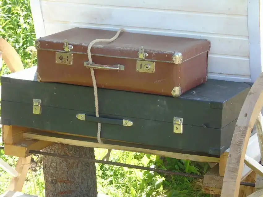 а сзади - площадка для перевозки багажа, на которую уложили два, отслуживших свой век, чемодана.