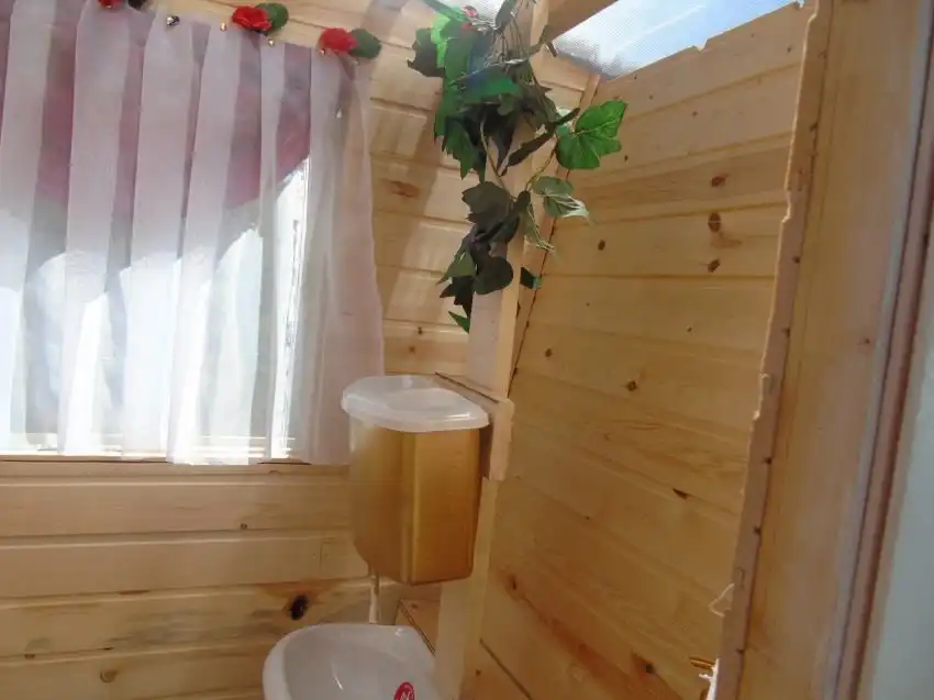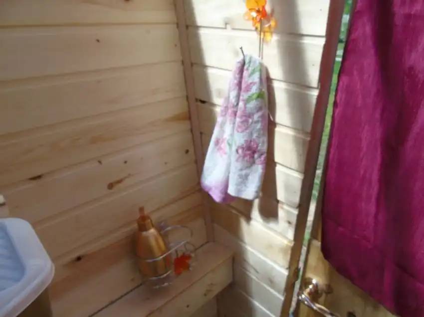 Через небольшое время, очередная идея была воплощена в жизнь и на территории дачи появилась вот такая туалетная комната.