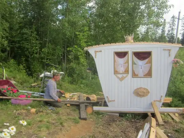 В начале года работа закипела. Закупили деревянных брусков, «вагонки» и приступили к строительству… кареты