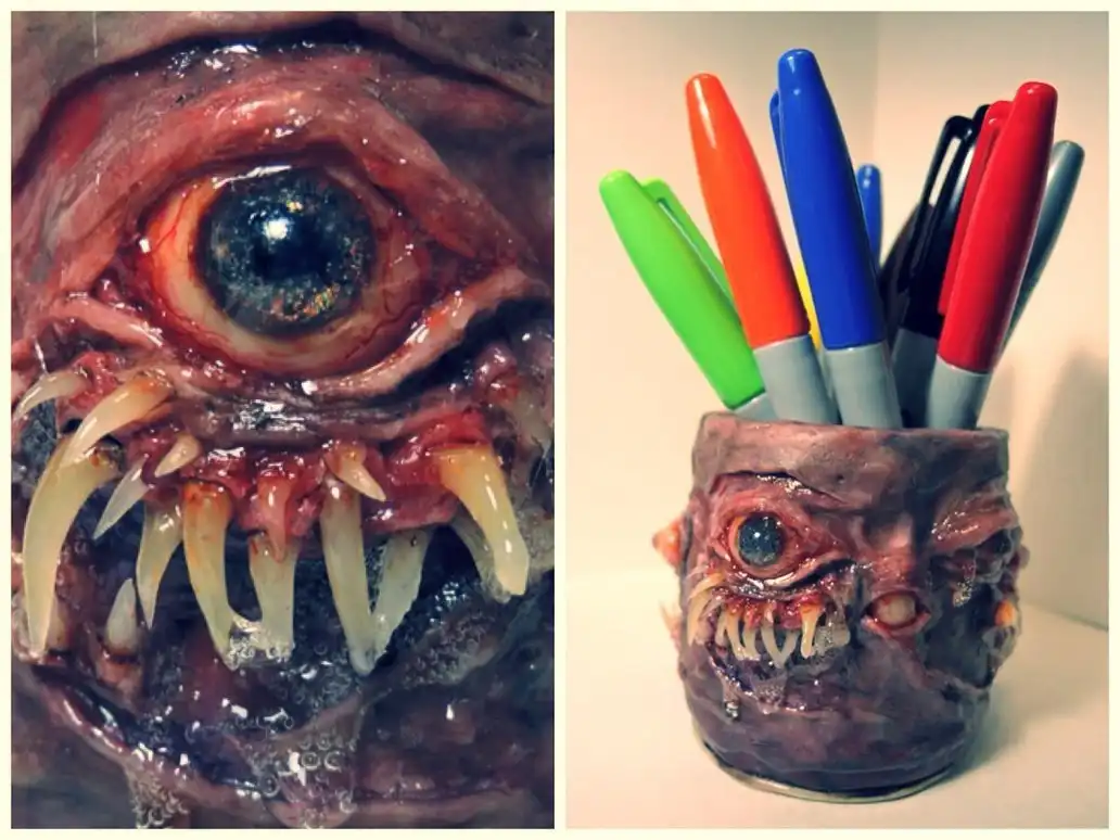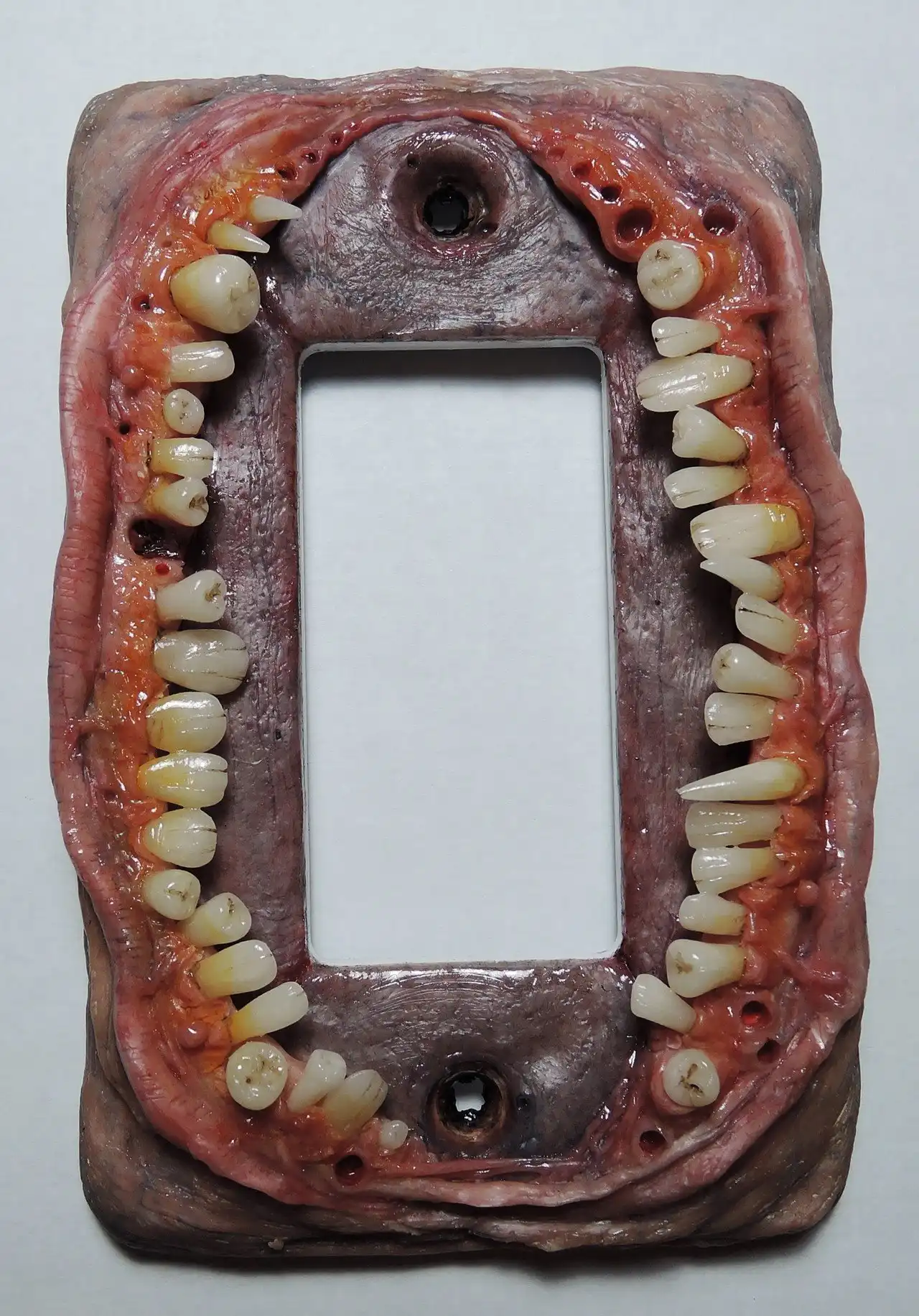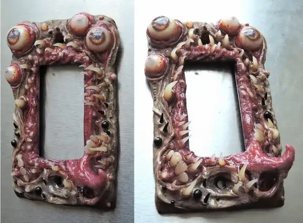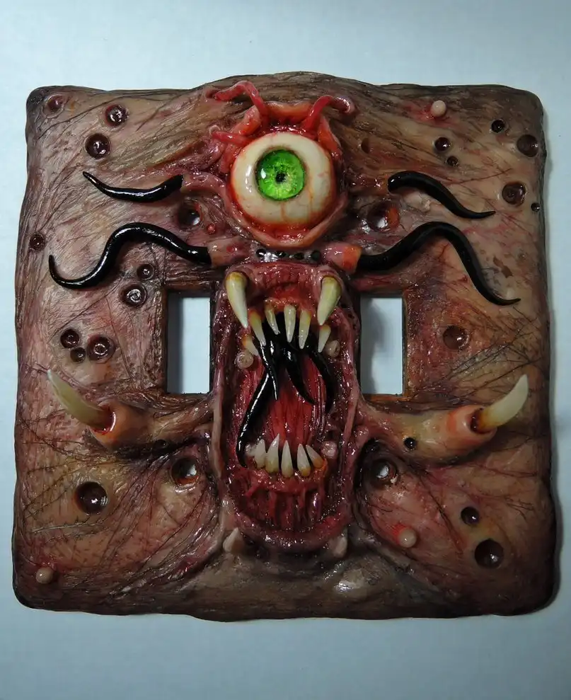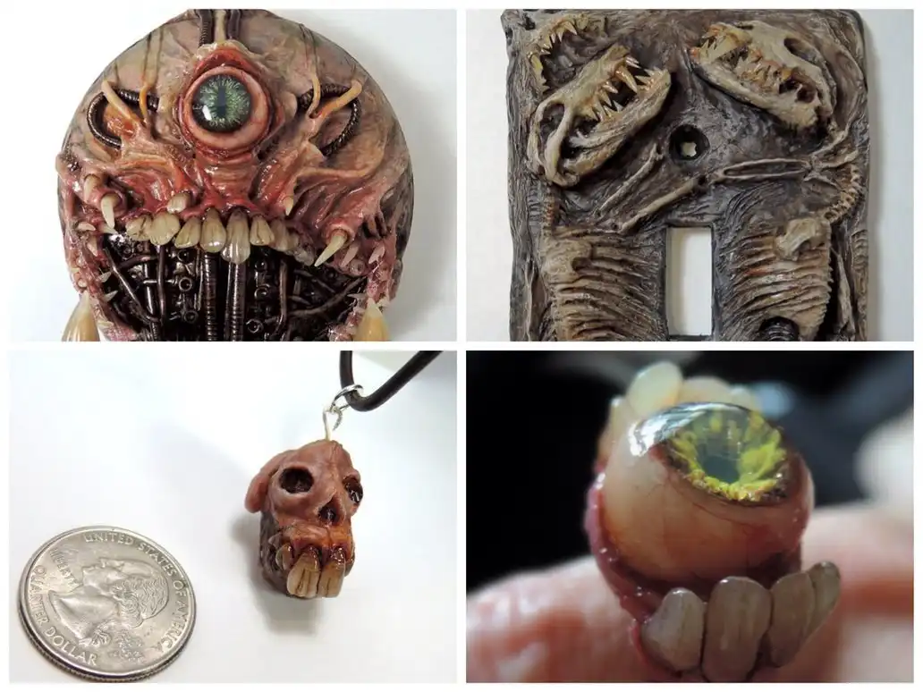 Аксессуары и различные «украшательства» для дома в виде выключателей, фигурок, ручек книг и розеток понравятся всем любителям ужастиков и фильмов о пришельцах. Занимательные фигурки от американского художника Morgan Loebel (который предпочитает называть себя Morgans Mutations) ужасают. Использование невероятного количества реалистичных зубов и глазных яблок только усиливает впечатление.