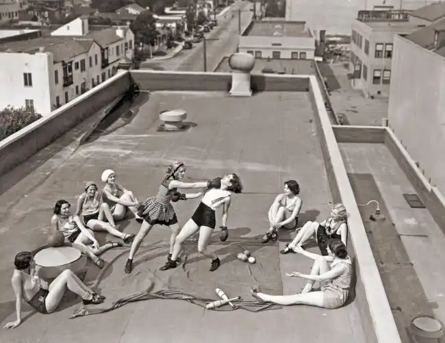 Женщины занимаются боксом. Лос-Анджелес (1933).