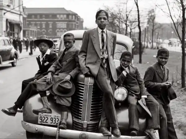 Молодая пара на Мичиган Авеню в Чикаго (1975).