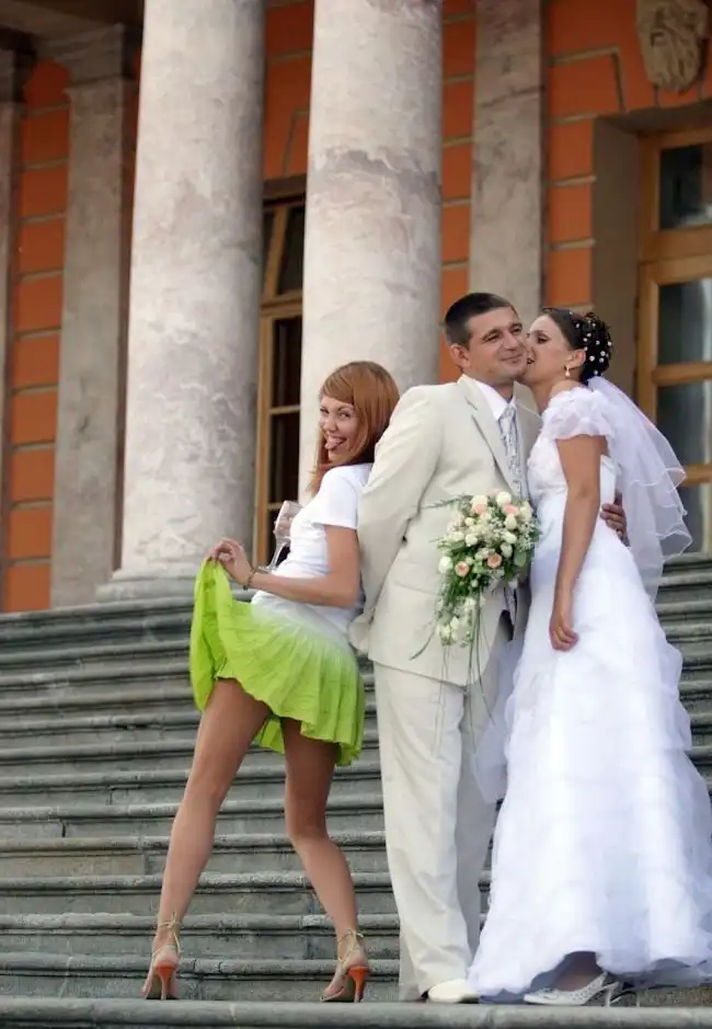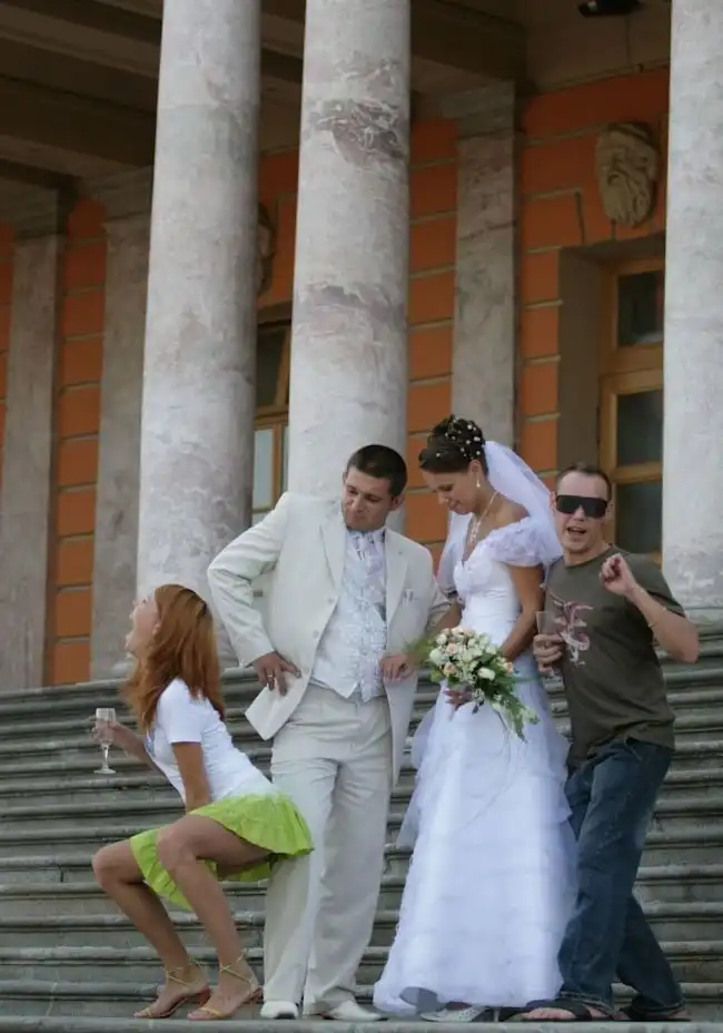 Подружка невесты на свадьбе решила немного подурачиться во время фотосессии молодых.