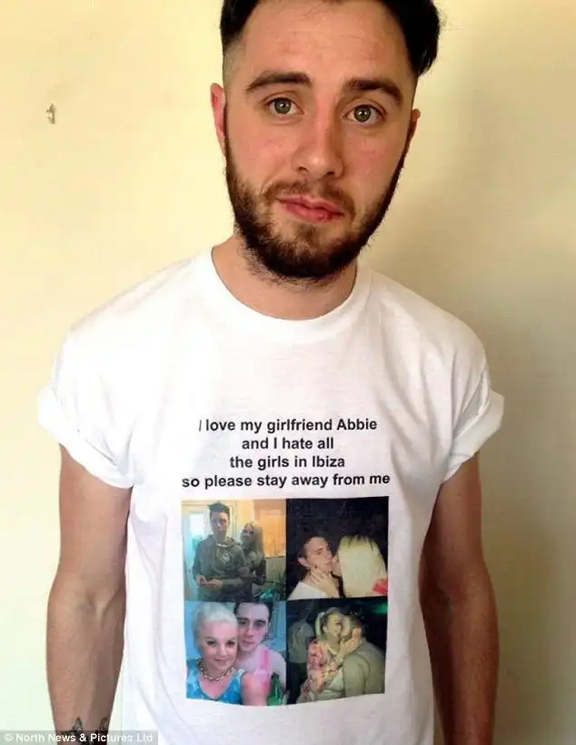 "Я люблю свою девушку Эбби и ненавижу всех девушек Ибицы, пожалуйста, держитесь от меня подальше" - такую футболку должен был носить парень весь отпуск.