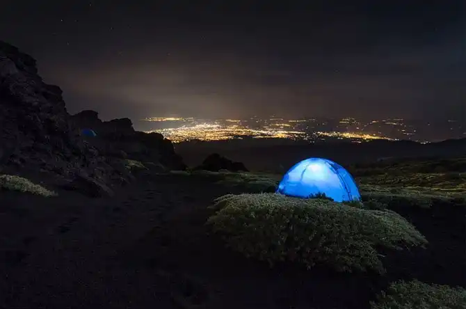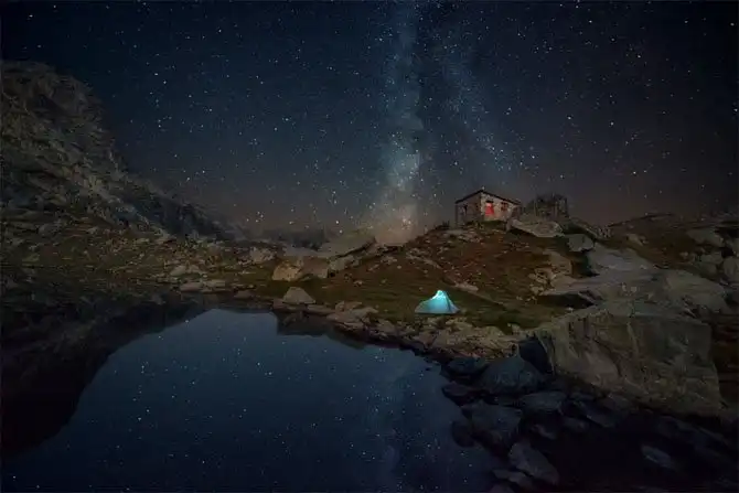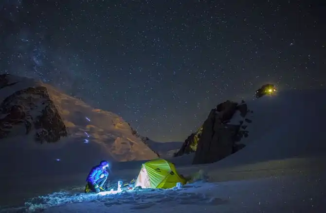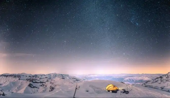 Кемпинг на высоте 3000 метров под красивым ночным небом.