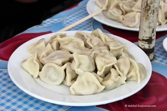 Кухня. Меню не блещет изысками, блюда самые простые. Нам предложили два вида пельменей, фарш состоял из мяса и разной зелени.
