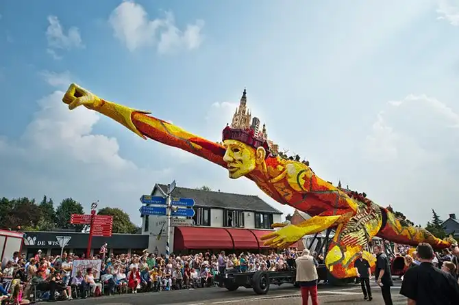 В голландском городке Зюндерт проводится самый масштабный парад цветочных скульптур в мире. Каждая фигура создаётся из огромного количества цветов. Скульптуры помещают на специальные платформы, а затем провозят по одной из улиц.