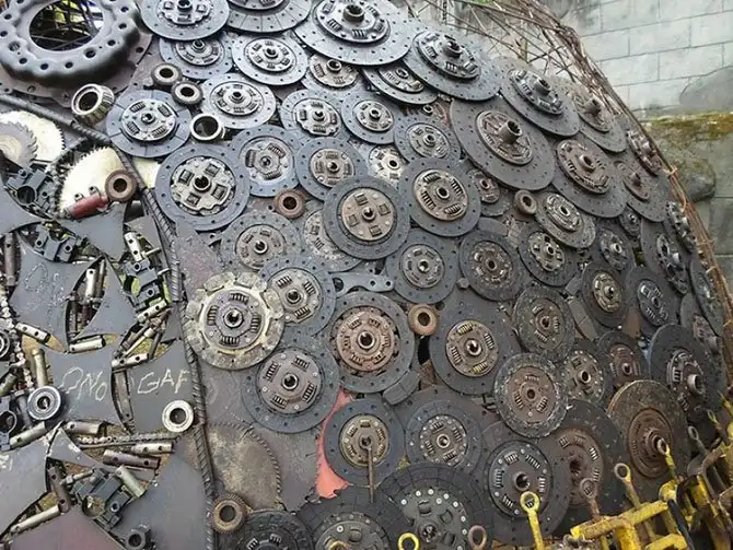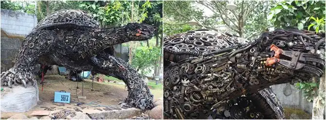 Индонезийский художник Оно Гаф создаёт скульптуры из выброшенных металлических деталей. Он тщательно подбирает подходящие элементы, а потом спаивает их между собой. Очередное творение — гигантская черепаха, кропотливо собранная из невероятного количества деталей, среди которых автозапчасти, рабочие инструменты, запчасти от велосипедов и многое другое.