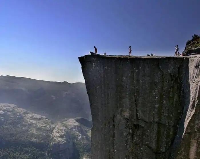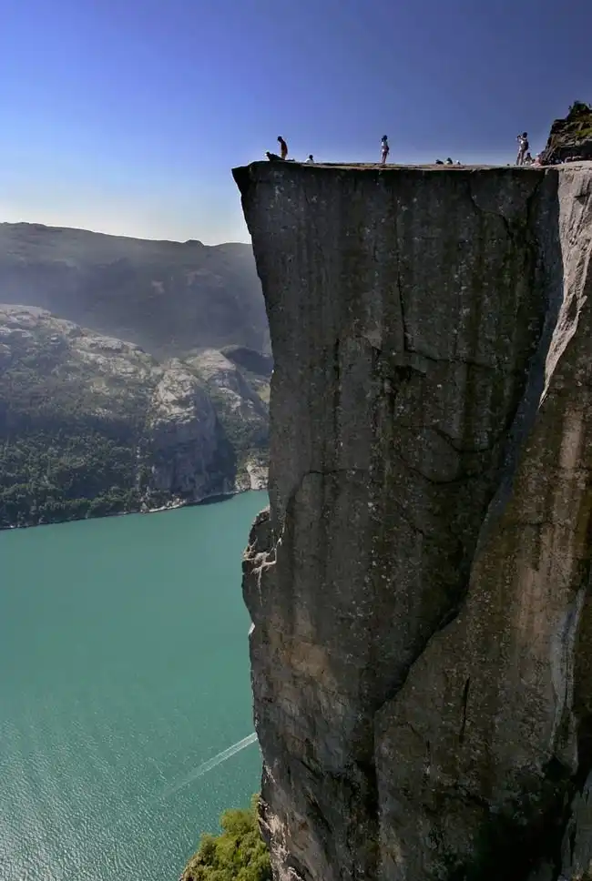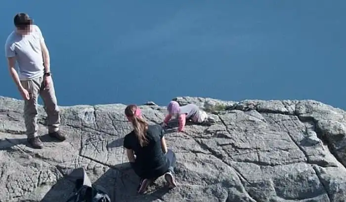 Ну, что тут еще добавить? Эту молодую семейную пару я бы точно не стал номинировать на премию "родители года".. К сведению, высота этой отвесной скалы - чуть более 600 метров, а мощнейшие ветры дуют здесь сразу с трех сторон.