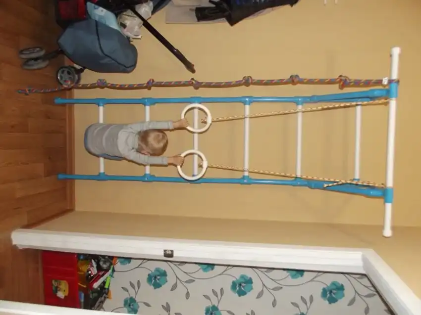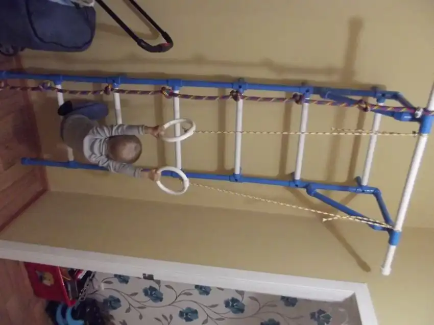 Сын очень доволен и не отходит от стенки уже неделю. Еще прикуплю заглушки и закрою отверстия в трубах в местах креплений.