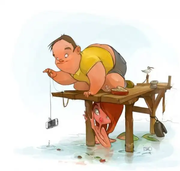 Москвича Сергея Ишмаева (ник — ISH ©) многие знают по культовой серии картинок «Beach Girls». Пухлощекие, как пупсики, или карикатурно гротескные персонажи иллюстраций попадают в остроумные и забавные ситуации, и очень деловито выглядят при этом.