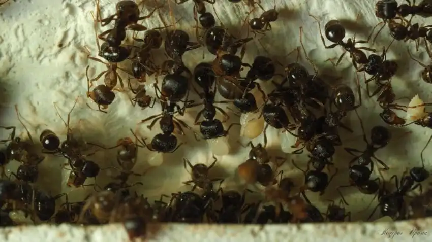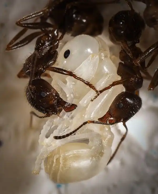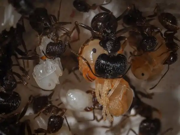 Интересно, что иногда куколку, непосредственно перед родами, забирают из роддома и относят в ту комнату, где этот муравей будет работать. Родившимуся муравью дают несколько минут, что бы умыться и на этом его детство заканчивается. Он включается в работу наравне с остальными муравьями.
