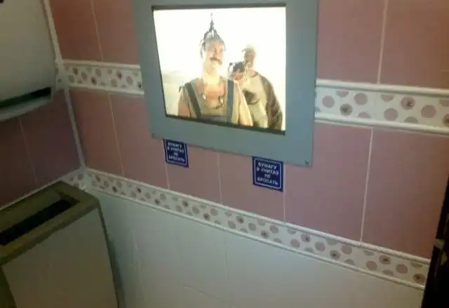 При этом, на против унитаза панель, транслируют "Кин-Дза-Дзу".