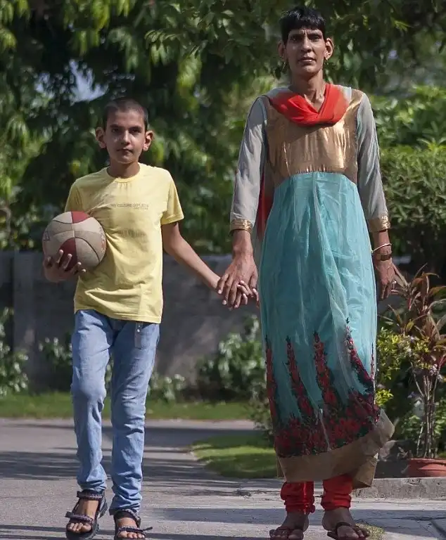 В 2008 году Каран Сингх попал в Книгу рекордов Гиннесса как самый крупный младенец. Мальчик родился весом в 7 кг и ростом 61 см. Сейчас Карану 5 лет и его рост составляет без малого 1 м 70 см. Ничего удивительного в росте мальчика нет: его мама по имени Швеатлана до 2012 года носила титул самой высокой женщины Индии. Ее рост составляет 2 м 18 см.