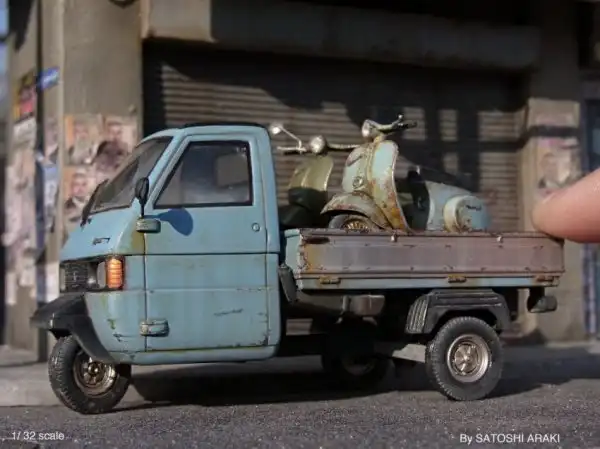 45-летний японский художник Сатоси Араки известен своими миниатюрами городов, автомобилей, велосипедов и других различных типов объектов.