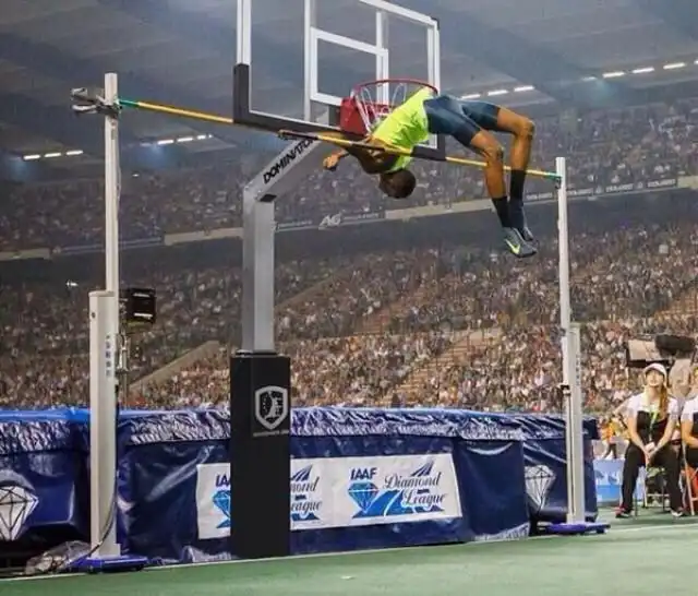 На фото специально было помещено баскетбольное кольцо, что вы могли себе примерно представить, как высоко прыгают спортсмены, участвующие в прыжках в высоту