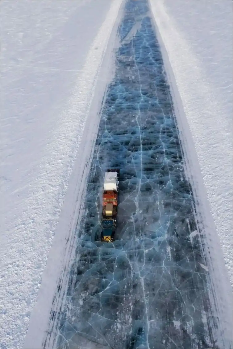 Ледяная дорога, по которой дальнобойщики доставляют грузы