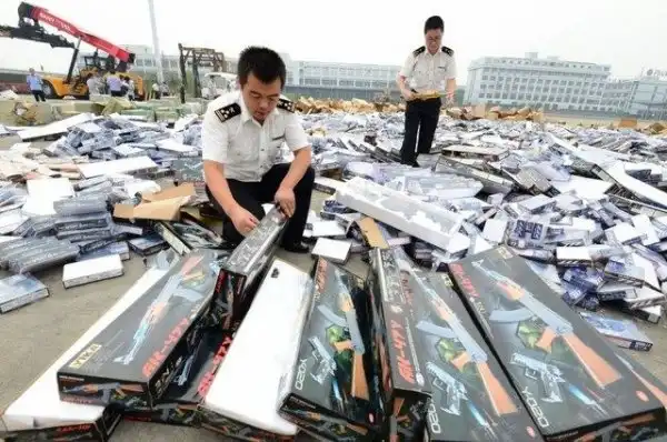 В Китае очень строгие законы, касающиеся оружия, поэтому все производство, хоть как-то связанное с производством огнестрела, запрещается. Мало того, даже игрушечные копии настоящего оружия подлежат конфискации. Недавно тамошние правоохранители уничтожили 70 000 единиц изъятых пистолетов и автоматов, стреляющих резиновыми пульками. Да да, именно таких, которые к нам оттуда везут невероятными партиями.