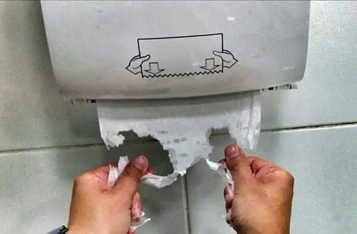 Пять дозаторов полотенец, которые вешал слепой человек.