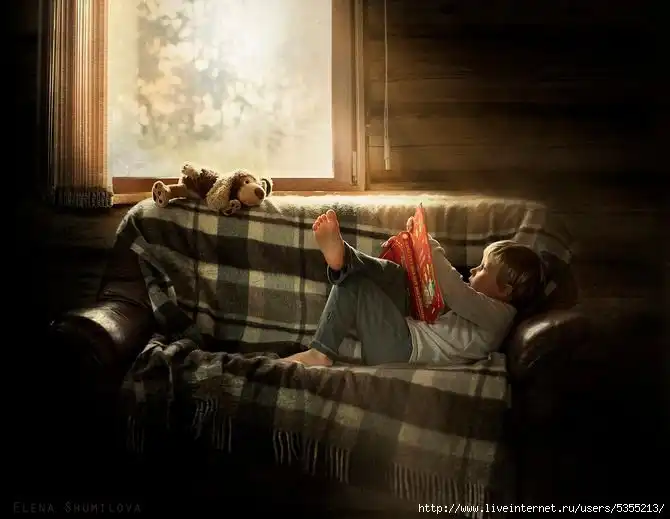 Детство. Мы все родом оттуда. Оно было у каждого из нас. Было... Мы, взрослые, всезнающие, не часто вспоминаем о нем, но почти каждому хоть иногда хотелось туда вернуться. Забыть о взрослых проблемах и заботах; снова взглянуть на мир чистым-не уставшим от красок взором; искренне удивляться совсем обыденным для сегодняшних нас вещам;что-то исправить или сделать отложенное на потом в то время когда жизнь казалась вечной; пережить заново-ощутить те эмоции яркие и искренние...Мы бессильны осуществить это свое желание.Время не повернуть вспять. Каждый из нас может заново соприкоснуться с детством, только через своих детей, внуков... Как это сделала фотомастер Елена Шумилова.