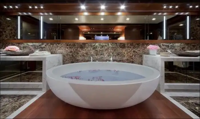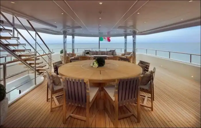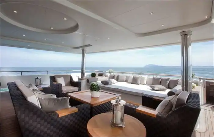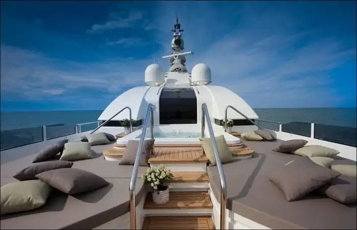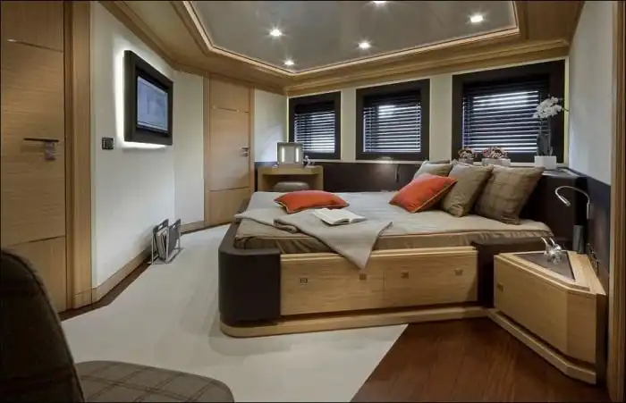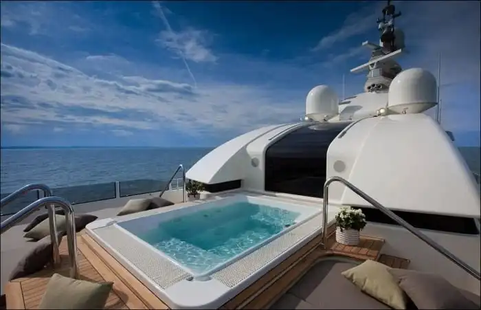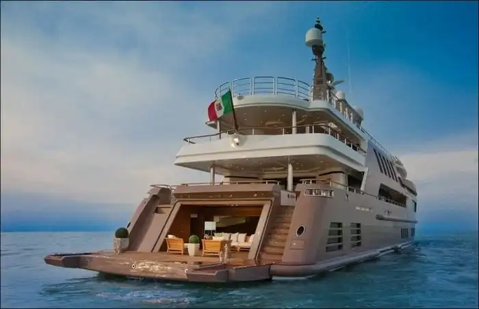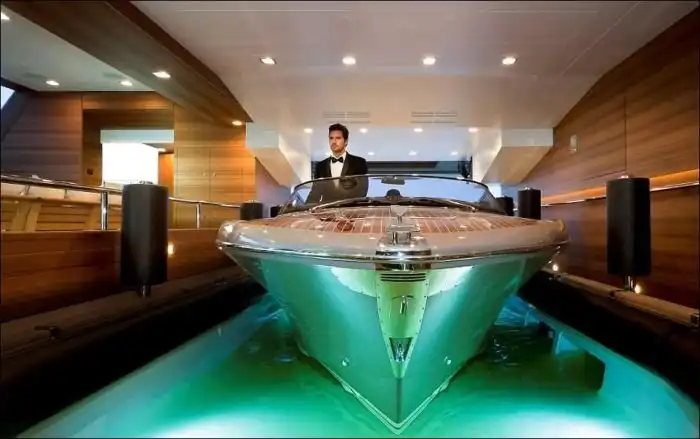 Дорогостоящие яхты в наши дни являются не просто средством передвижения по воде, а еще и показателем статуса их владельца. Сегодня я хочу рассказать вам об уникальной яхте, которая была в центре всеобщего внимания на яхт-шоу в Монако. На этой 40-метровой яхте с легкостью разместится до 10 человек, для которых предусмотрены 4 каюты, а также люкс-апартаменты для владельца. Но главной изюминкой этой яхты является необычной "встроенный гараж" для 8 метрового катера, на котором вы можете заплыть прямо внутрь вашей яхты.