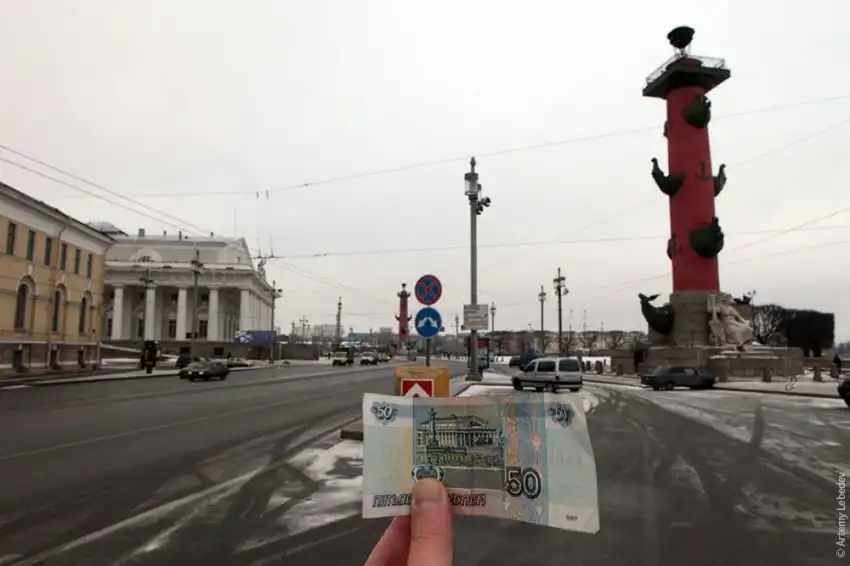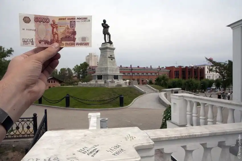 Много лет назад я решил в разных городах сфоткать все русские купюры на фоне того, что они изображают. Это было нелегко, но теперь приятное чувство удовлетворения греет меня.